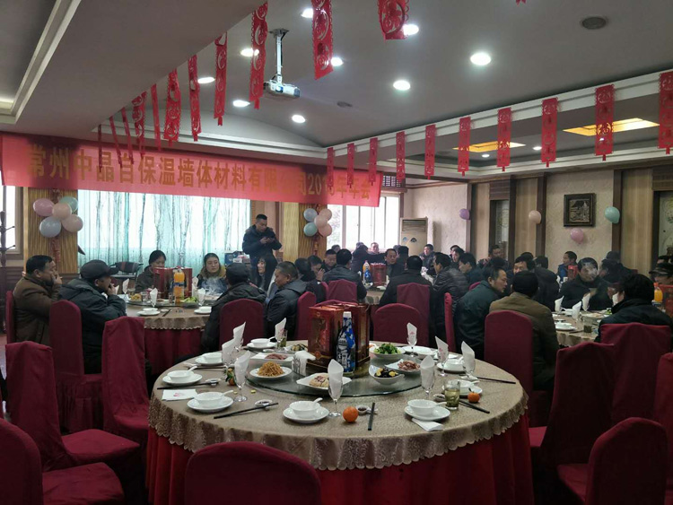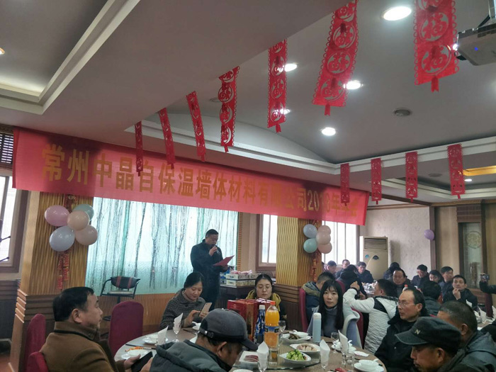 旺犬踏瑞去,金豬送福來!常州中晶自保溫墻體材料有限公司隆重舉行了2019年新年答謝會中晶自保溫墻體材料全體員工人參加年會,整場年會在歡樂、喜慶的氛圍中落下帷幕。預(yù)示著來年公司會更上一層樓!