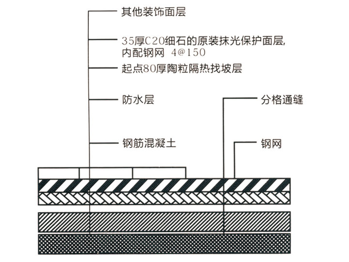 6、陶粒鋪時應(yīng)設(shè)置水坡度,屋頂面積較大時應(yīng)該設(shè)置排水溝。