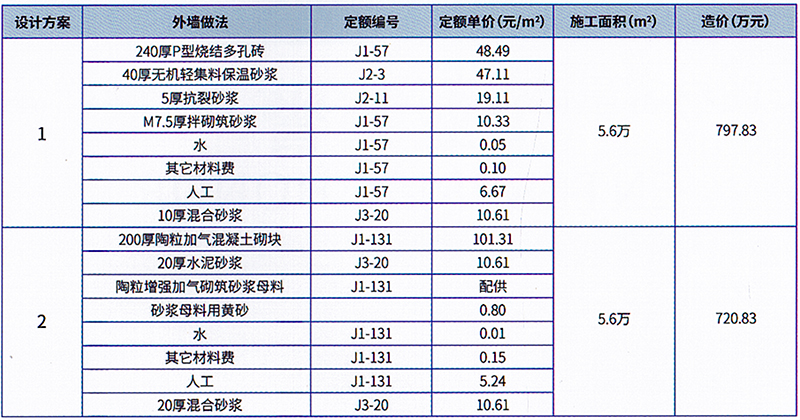 根據(jù)墻改辦規(guī)定墻改押金為10元/M2,采用P型燒結(jié)多孔磚,退50%,而采用陶粒加氣砌塊可退回全部墻改押金采用設(shè)計(jì)方案2,可節(jié)省墻改押金10X14萬(wàn)m2=140萬(wàn)元。